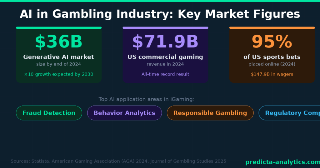 According to Statista, the total generative AI market could reach $36 billion by the end of 2024, with growth of more than 10 times expected by 2030. Risk The gambling sector is no exception: US commercial gaming revenue hit a record $71.92 billion in 2024, with 95% of sports wagers placed online. The Mesa Tribune Where money and data flow, AI inevitably follows.